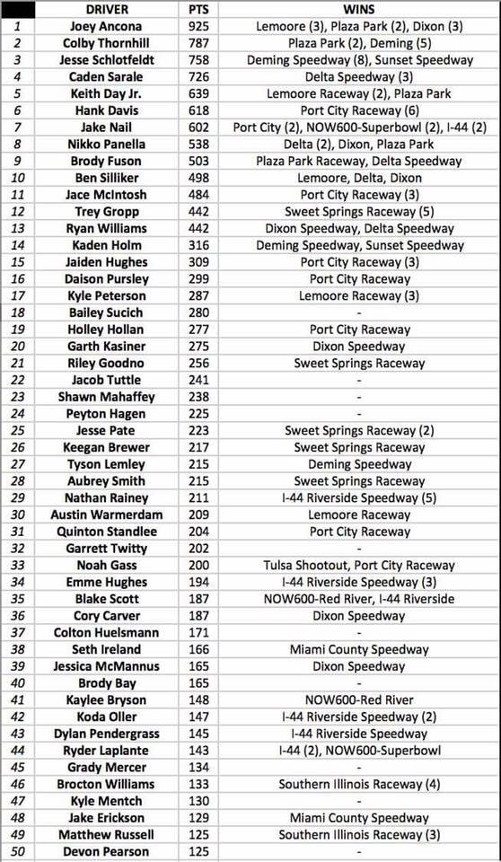 Updated National Points for Restricted division! Joey Ancona extended his lead and Jesse Schlotfeldt closed on Colby Thornhill for second.